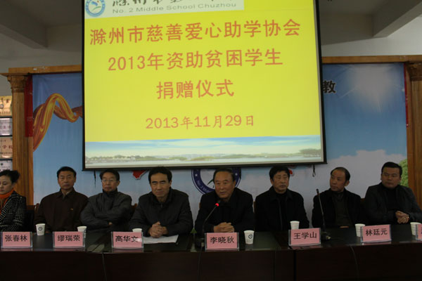 本年的捐赠中,除了今年新入高中年级的贫困生之外,依然延续去年的部分捐助。市人大副主任秦钢昌、会长李晓秋依然继续每人分别捐助二中一名贫困学生;安徽奥丰汽车配件有限公司的总经理何静芳,也依然向去年捐助的10名二中贫困学生继续资助,同学们接到善款后非常感动,纷纷表示一定会努力学习,不辜负协会和社会对我们的关爱。