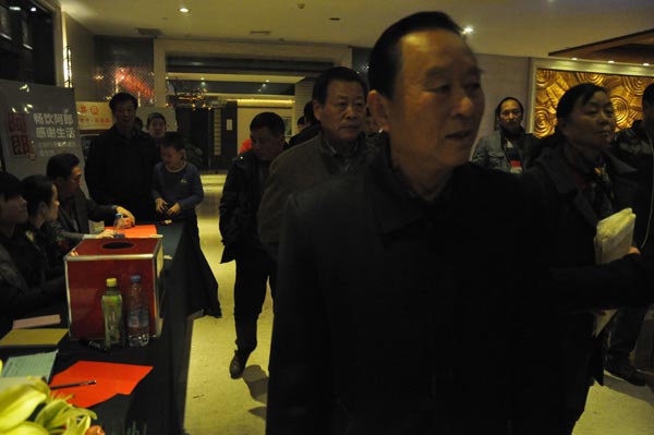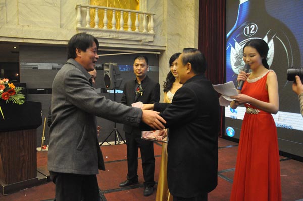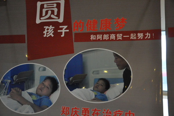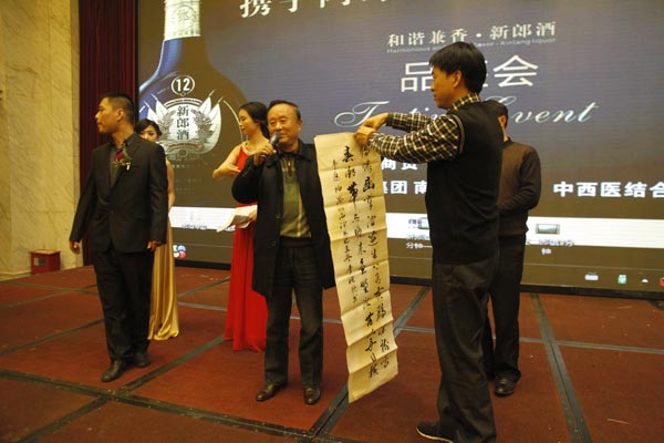 12月7日,滁州阿郎商贸公司成立,并在君家酒店发布郎酒滁州总代理新闻推介会,约有200人参加了这次活动。阿郎商贸公司曹锋经理,博爱文社范正海书法家,滁州五金机电商会的部分领导,市慈善爱心助学协会的会长李晓秋,副秘书长商屏,爱心大使徐政,市政协副秘书长胡新忠等领导出席。 会前大家商量,利用这次活动为在中西医结合医院治疗的定远县岱山乡的十三岁患尿毒症少年郑庆男募捐。小庆男的父母都是农民,孩子的患病治疗使家中生活难以为继,中西医结合医院的主任医师俞凯呼吁社会救助。当晚李晓秋会长在台上大声疾呼请大家关爱病童,献出爱心多少不限,并带头捐献500元,一并前去的商屏秘书长、胡新忠秘书长、徐政爱心大使及五电机器商会的企业家纷纷捐献500元——1000元。李晓秋并带去两幅四条屏书法作品,在台上展示,谁捐1000元,就赠送书法四条屏,并表示只要捐给孩子1000元,就送四条屏,当场就有多人认捐,范正海、许正波等中书协会员向捐款者赠送书画作品,台下纷纷响应,将活动推向高潮。当晚共获得善款35000元,隔日送到医院交到病中孩子父母手中,作为孩子专项治病用款。