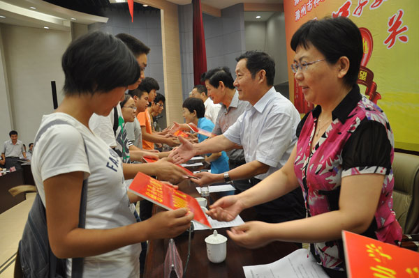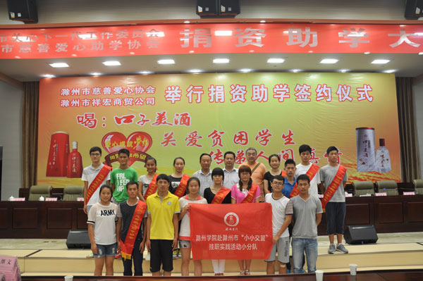 市关工委和我会于8月26日下午在市政务中心东楼一号会议室,隆重举行2014年度捐资助学大会,我会部分会员和受资助的贫困学生代表共300余人参加了大会。应邀出席大会的市领导同志有:市人大主任李耀才,市人大副主任秦刚昌、朱云霞,市政协副主席查镜波、李庆宁,市关工委领导陈家声、陈六、黎田、李晓秋、白运河、许学明,我会领导李晓秋、常务副会长、副会长和驻会工作人员全部出席。我会特聘的顾问单位负责同志,滁州市广播电台、电视台、报社、网站、部分驻滁记者站也参加会议。