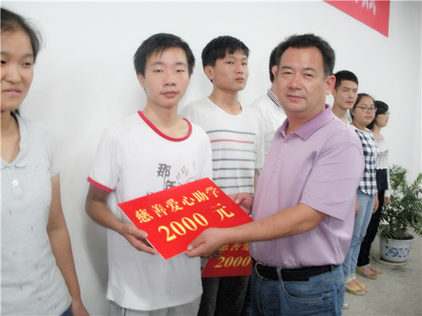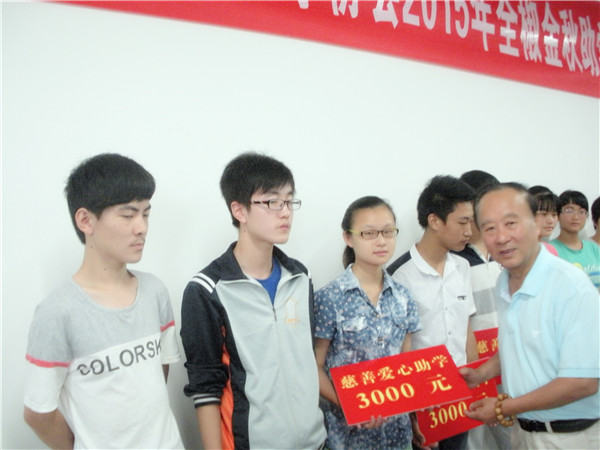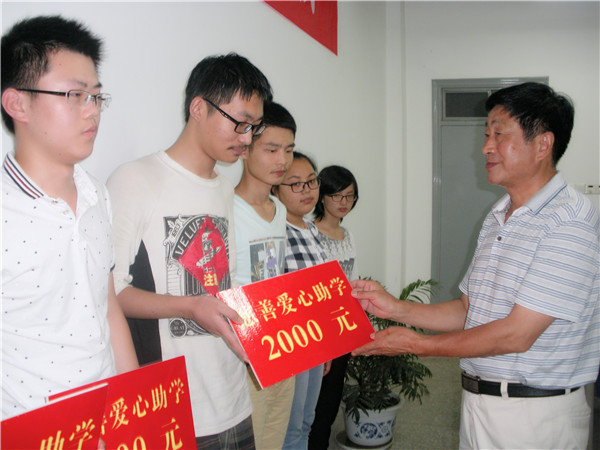 市、县两级领导当场向20位应届新大学生捐款5万元。亲自把善款一一交到每一位学生手中,并给予衷心地鼓励和希望。