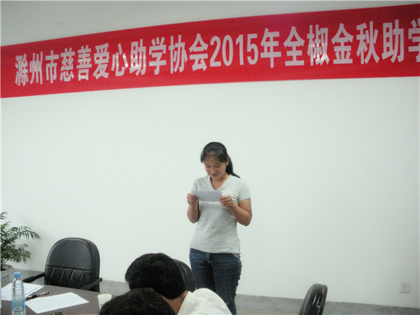 大会于上午9时30分开始。全椒县政协主席冯家翠等领导出席了捐助仪式,县关工委主任马有华首先感谢协会对该县贫困学生的关爱和资助,勉励学生克服困难、发愤读书。滁州市祥宏商贸公司董事长、协会副会长张圣宏介绍了本人从贫困中奋起、小有所成的体会;希望学生们要不畏艰难,好好读书,早日用自己的努力改变现状,成为社会有用之材。同时表示将一如既往地帮助他们顺利完成学业。