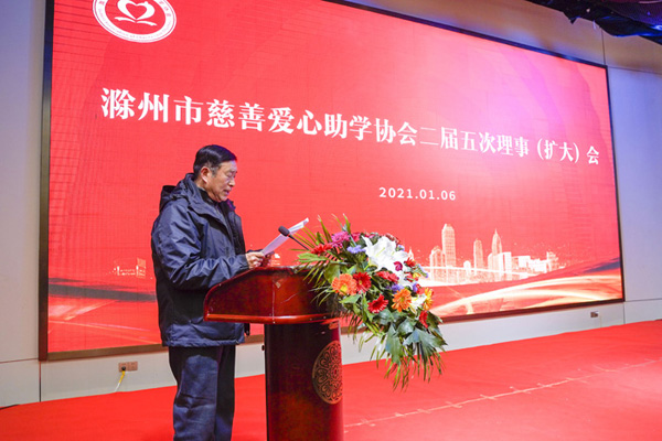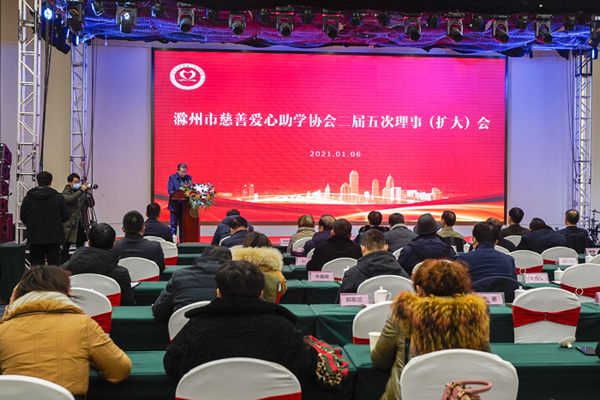 2021年1月6日下午2:30分,滁州市关心下一代工作委员会、滁州市慈善爱心助学协会在金鹏99广场酒店,召开“慈善爱心助学协会二届五次理事(扩大)会暨2021迎新春年会”。市关工委主任李耀才,关工委常务副主任傅厚华、副主任朱云霞,市政协原副主席高菊华,市民政局社会组织管理局局长董如宝,协会会长、领导组成员、顾问、副会长、理事、爱心人士等共计260余人参加了会议。