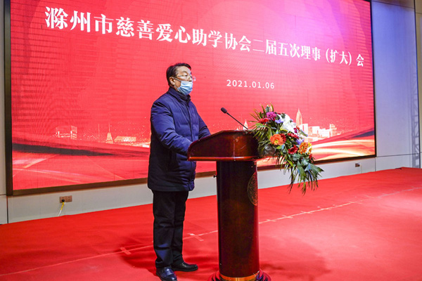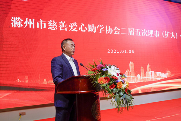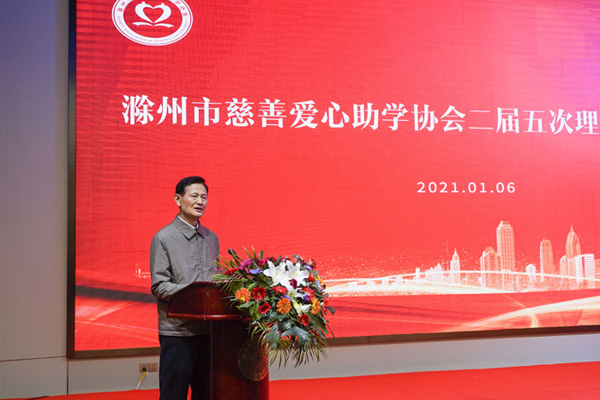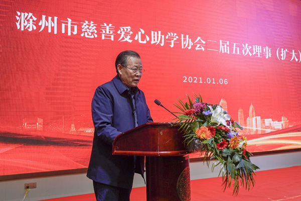 滁州市关心下一代工作委员会主任李耀才会上作重要讲话,他全面肯定了协会工作,他指出:2020年是极不平凡的一年,广大爱心企业、爱心人士,面对抗疫斗争,戮力同心、砥砺前行,创新方法,在帮助青少年“圆梦”的道路上,不怕苦、不畏难,坚持扛起如山的责任,展现出激昂的风采,取得了显著成就。青少年是祖国的未来和民族的希望,开展爱心助学,是支持和帮助青少年成长成才实实在在的行动,更是社会精英、成功企业家、爱心人士高尚人格魅力的具体体现,你们个个都是好样的。真情感动世界,挚爱温暖人间。希望社会各界将爱心事业、爱心精神、爱心理念不断发扬光大,为建设现代化新滁州作出新的更大贡献。