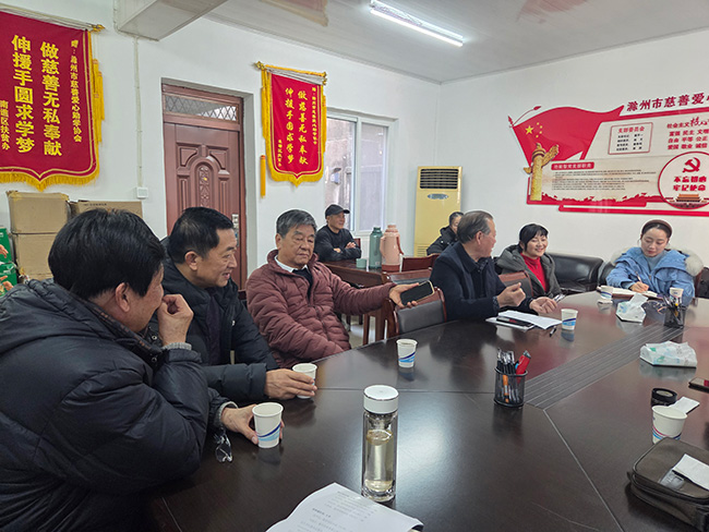 2025年12月26日下午2:30,市慈善爱心助学协会在协会会议室召开领导班子会议,研究协会2026年迎春年会的相关事宜。会议由协会领导组副组长胡新忠主持,在滁的领导班子成员全部参会,并邀请了金鹏控股集团的相关负责人列席会议。会议主要落实了迎春年会的时间、地点、材料、会务等准备工作以及工作人员分工安排。初步将年会暂定为2026年1月15日在金鹏99广场酒店会议室召开。