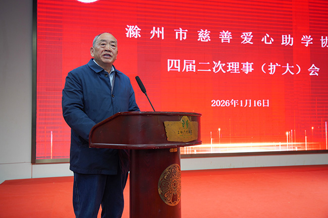 1月16日,滁州市慈善爱心助学协会四届二次理事(扩大)会暨2026迎春年会在城南金鹏广场酒店成功举办。滁州市人大常委会原主任、市关工委主任李耀才,市人大常委会原副主任、市关工委常务副主任傅厚华、朱云霞,市人大常委会原副主任、协会名誉会长贾朝峰,市政协原副主席、市关工委常务副主任、协会名誉会长高迁,市政协原副主席、市关工委常务副主任孙敏民,市民政局副局长石伟,市关工委副主任朱庆龙、朱荣,协会会长、金鹏控股集团董事长孙元武等领导,以及协会领导组成员、协会顾问、协会全体会员参加活动。