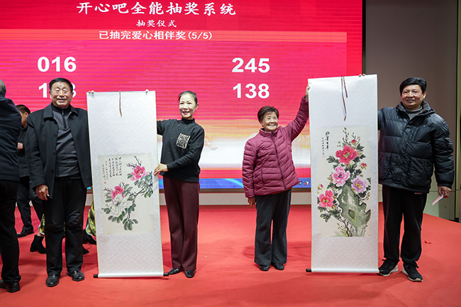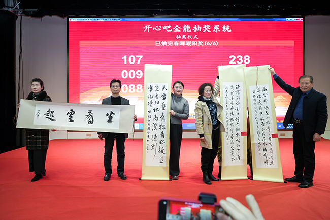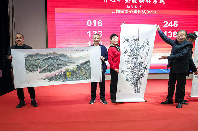 会议结束后,开展了精彩的文艺演出,歌曲、舞蹈、朗诵、花鼓轮番上演,现场热情高涨,掌声不断。现场展示了李晓秋、袁少厚、宋瑞才、沈严亮、胡业清、赵以宝、王庆昌、高万杰、许静真等著名书法家、画家的书画作品,并作为抽奖礼品赠送协会会员。