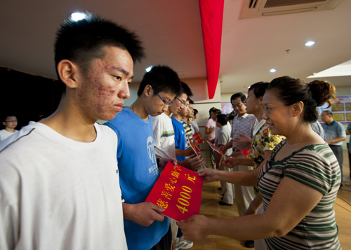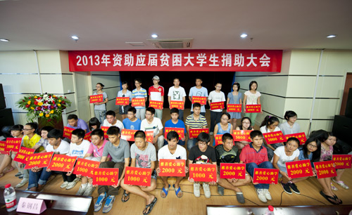 截止目前,市慈善爱心助学协会2013年共资助贫困学生547名。其中大学生112名,每人资助5000元的10名,资助3000元的10名,资助2000元的77名,资助1000元的15名,共资助大学生24.9万元。资助高中生315名,其中 3000元的1名,2000元的10名,1000元的304名,共资助高中生32.7万元。资助小学生120名,其中每人500元的20人,每人200元的100人,共资助3万元。资助腰铺小学5000元。2013年助学资金捐出达61.1万元,高中部的捐款九月份逐步到位,捐出金额比去年增长了50%。今年爱心人士、慈善爱心企业家的队伍,也得到了发展和壮大。