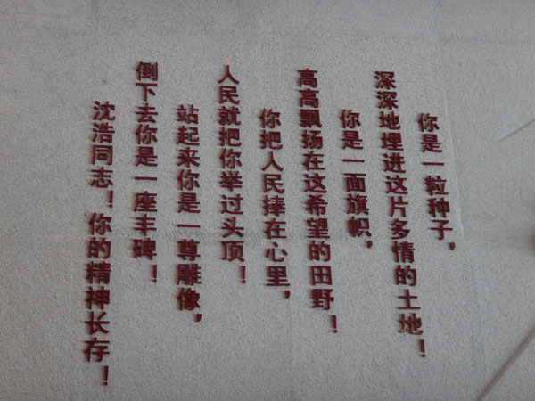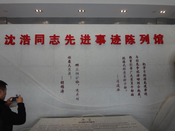 参观沈浩纪念馆,沈浩生前的生活、工作、言行、点点滴滴,无不感动着每个人,敲打着人们的灵魂,净化每个人的心灵,参观者无不唏嘘感叹,甚至酸鼻。沈浩在极平凡的岗位上,通过自己的言行,诠释了共产党人的无私奉献,一心为民的博大胸怀!