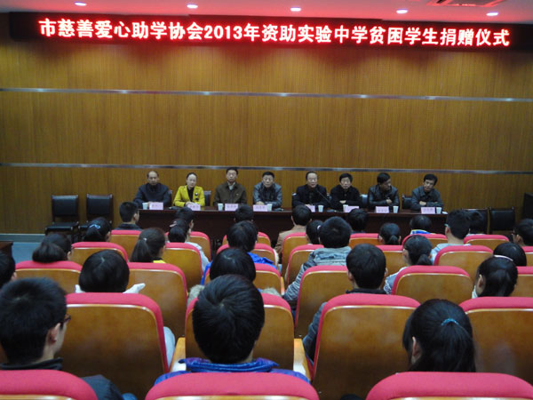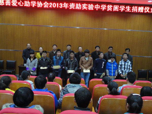 2013年11月26日至12月6日,我会会长李晓秋,常务副会长缪瑞荣、林廷元,副会长王学山、张春林、张竞、孙元武、张圣宏、宋家明、潘杰明、李晓玲,常务理事高雅、何静芳,副秘书长白礼华、黄平一、商屏,分别向一中、二中、实验三所学校的186名贫困学生每人1000元进行面对面捐助,各校的领导对此次捐助活动表示衷心的感谢,并给予热情接待。