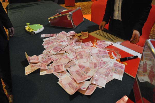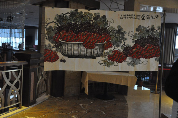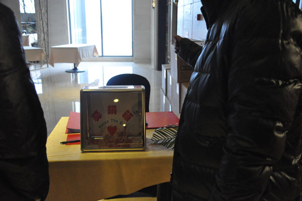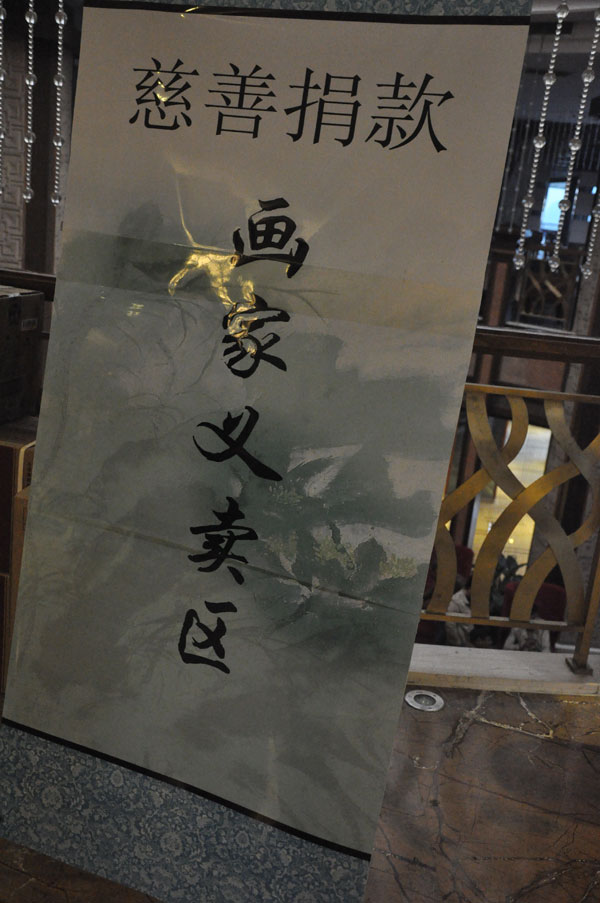 会前大家商量,利用这次活动为在中西医结合医院治疗的定远县岱山乡的十三岁患尿毒症少年郑庆男募捐。小庆男的父母都是农民,孩子的患病治疗使家中生活难以为继,中西医结合医院的主任医师俞凯呼吁社会救助。当晚李晓秋会长在台上大声疾呼请大家关爱病童,献出爱心多少不限,并带头捐献500元,一并前去的商屏秘书长、胡新忠秘书长、徐政爱心大使及五电机器商会的企业家纷纷捐献500元——1000元。李晓秋并带去两幅四条屏书法作品,在台上展示,谁捐1000元,就赠送书法四条屏,并表示只要捐给孩子1000元,就送四条屏,当场就有多人认捐,范正海、许正波等中书协会员向捐款者赠送书画作品,台下纷纷响应,将活动推向高潮。当晚共获得善款35000元,隔日送到医院交到病中孩子父母手中,作为孩子专项治病用款。