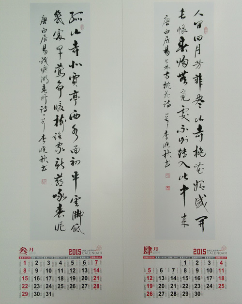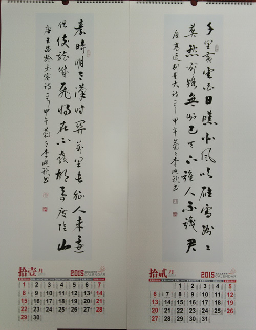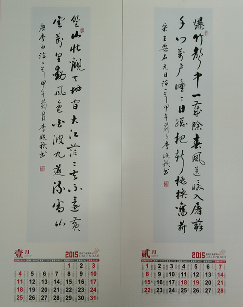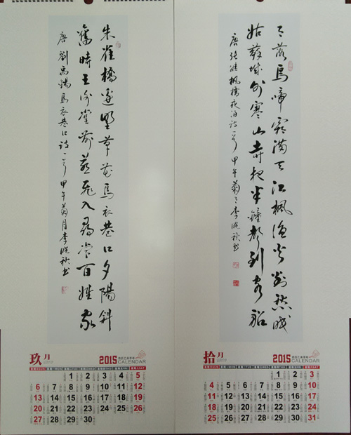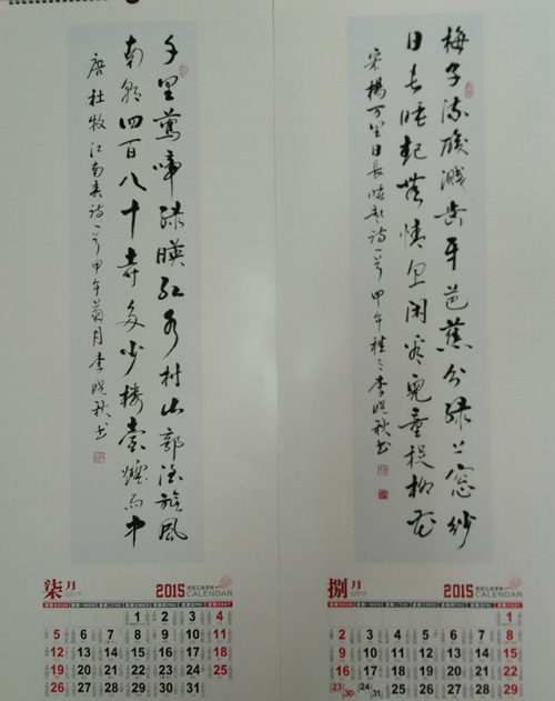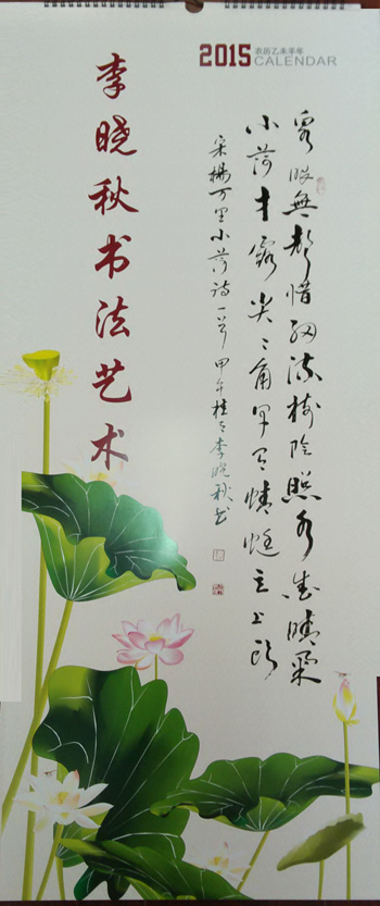 李晓秋书法艺术挂历,由合肥小古印社选印销售,回馈部分为书法稿酬,经李晓秋本人同意,部分挂历免费分送给相关朋友、协会爱心人士。
