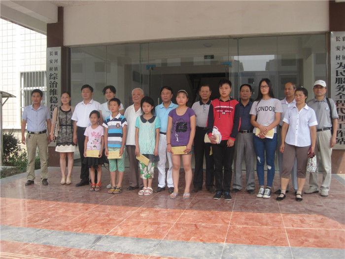 九月初,协会领导李晓秋、胡新忠、黄平一、赵文,在全椒襄河镇副书记杨杨的陪同下,向襄河镇长安村8名贫困家庭的学生捐助善款。