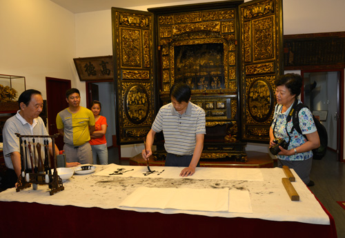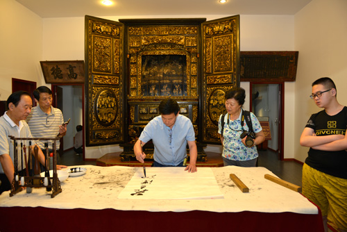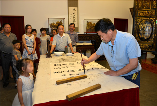 李晓秋主席和书法爱好者激动地泼墨挥毫。“楠馨”两个大字大气灵动。“楠木金心”更把对祖国瑰宝的热爱表达的淋漓尽致。