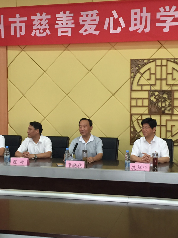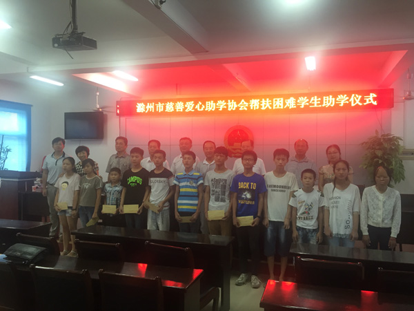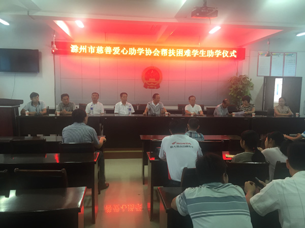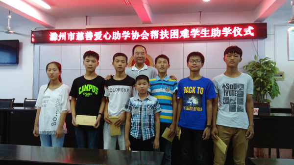 9时左右,我们又来到了全椒中学――一所历史悠久、古老而新潮的学校。在全椒县关工委和全椒中学的精心安排下,捐赠会场简洁而庄严,受助的三十名新大学生早已就座,他们用热烈的掌声和感激的心情将我们迎进了会议大厅。会议由全椒关工委副主任陈春和主持,主任马有华首先发言,他对我协会到全椒资助贫困大学生表达了崇高的敬意和衷心的感谢!对慈善爱心助学善举给予了高度评价。接着李晓秋主席作了热情洋溢的讲话。他首先向直接捐资的滁州祥宏商贸公司的张圣宏董事长表示了深深谢意,肯定了他为家乡精准扶贫所作的积极贡献。他勉励受助学生一定要直面困难,不畏艰辛,敢于担当,勤奋学习,用自己的努力改变自身和家庭的命运。全椒县委常委、组织部长代表县委、县政府向我们表示热烈的欢迎和感谢!对我们的善举表达了崇高的敬意!他要求大学生们要树立自给自足意识,通过自身努力早日脱贫解困。要树立信心,牢记有党和政府的关怀,他们一定会克服困难,前途光明。