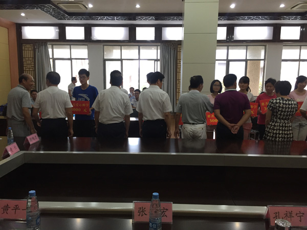 2016年8月26日早晨,市关工委副主任、市慈善爱心助学协会领导组组长李晓秋一行4人,在全椒县襄河镇党委副书记杨杨的导引下,驱车来到长安村。在村政府会议室,向7名中、小学生或家长发放了资助款。李晓秋主席深情地勉励家长们一定要坚持再坚持,千万不能耽误孩子的学业。再苦也不能苦了孩子。同时鼓励中、小学生要从小立大志,努力学好科学文化知识,早日成才、成人,改变自己和家庭的命运。我们的资助不要你们任何回报,只是传递爱的正能量。希望孩子们永远对祖国怀着一颗感恩的心,把爱心一直传播下去。