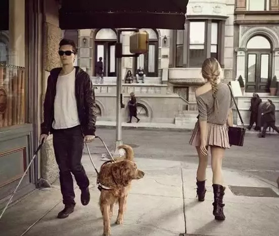 渐行渐近,只见年轻男子高大魁梧,腰板挺直。紧贴着他的德国导盲犬配有专业的拉杆——这是导盲犬的标准装备。哦,是一位盲人。男子徐徐走向车站,在候车队伍的不远处停了下来。