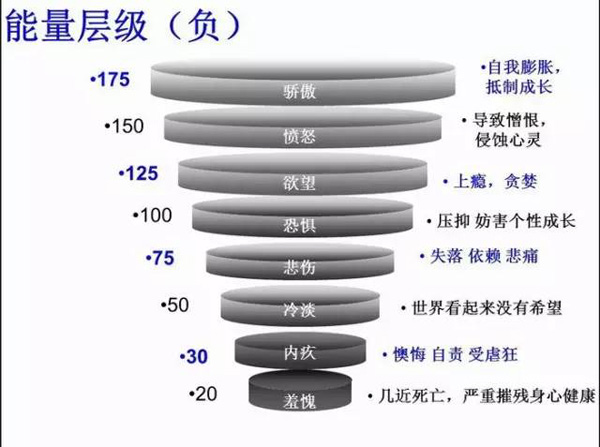 戴维.霍金斯发现,凡是生病的人一般都用负面的意念,他们喜欢抱怨、指责、仇恨别人,不断指责别人过程当中就消减自己很大的能量。这些意念的振动频率低于200。这些人容易得很多不同的疾病。