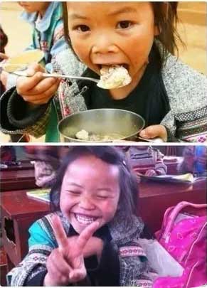 【土豆是她每天唯一的早饭】倪东芬,8岁,长了一张忧愁的面容,多姑小学的特困生:母亲早年瘫痪,体弱的父亲外出。与哥哥在家相依为命,在亲友和村里人的帮助下,种植一点土豆——这也是她每天的唯一的早餐。到了学校,她才能依靠餐补吃上米饭。她身高115.5厘米,体重19.5公斤。