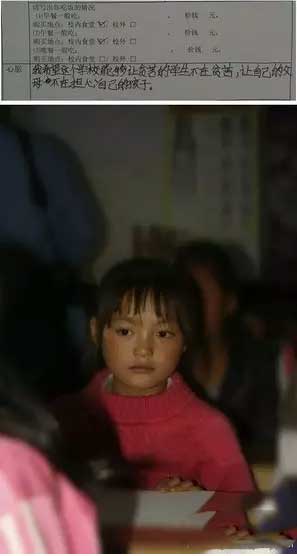 【她说:我希望贫困的孩子不再受苦】在云南收集孩子的心愿时,有形形色色的愿望,但这个女孩的答案却让我们无能为力。她说:我希望这个学校能让贫困的学生不再受苦,所有的母亲不再担心自己的孩子。