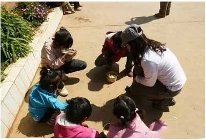 【以地为桌】看到孩子们没有板凳,以地为桌,我们黯然无语。