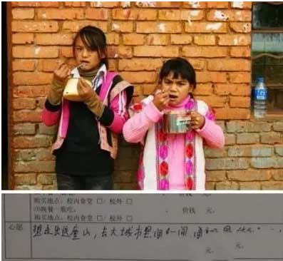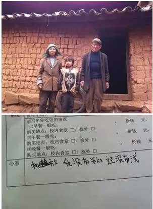 【一个孩子最原始最质朴的心愿】他叫意兴明,8岁,多姑小学2年级学生。1岁时妈妈病亡,爸爸坐牢,与14岁的姐姐跟爷爷奶奶相依为命,我做营养调查,问他有何心愿,文具?玩具?衣服?他只是摇头,接过笔,默默写下:我想吃饭,可是没钱。