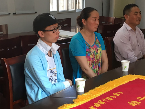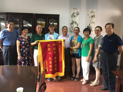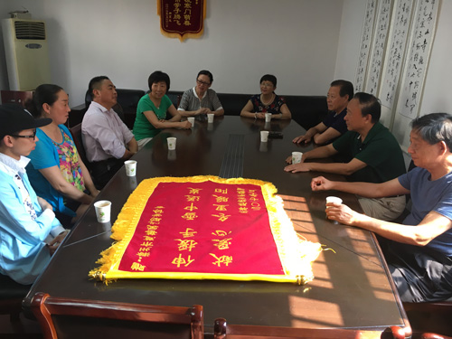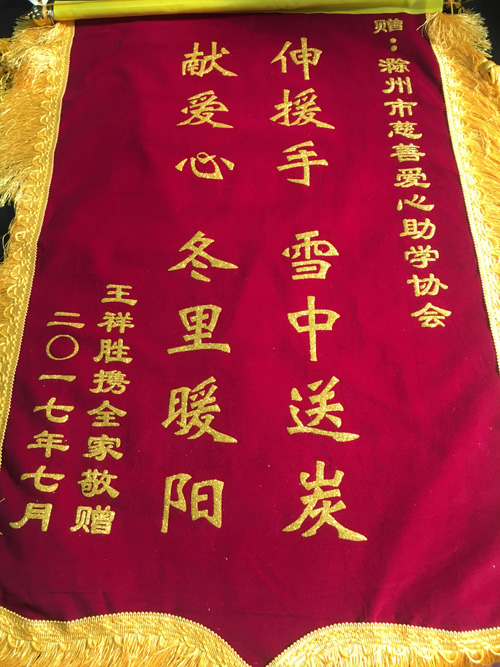 七月二十六日下午炎热如火,每个人都大汗淋漓,在如此高温下,滁州第一中学应届毕业生王明和父亲母亲一道冒着酷暑前往协会,向协会捐赠锦旗和糖果。父亲是残疾人,向协会表达几年来的扶贫助学的帮助,使儿子以高分考入一本重点安徽财经大学。感激之情溢于言表。