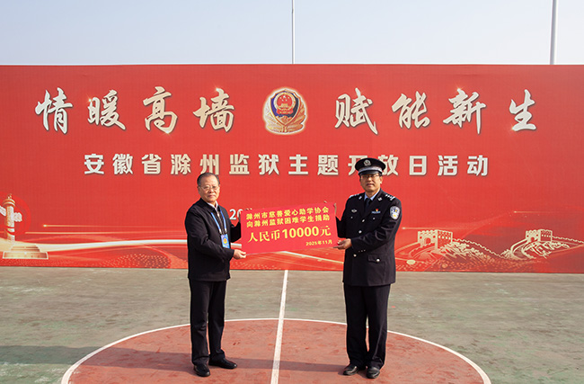 为了不让一个适龄青少年困贫辍学,让社会的关爱情暖高墙。滁州市慈善爱心助学协会领导组副组长胡新忠、王学山、黄平一,副秘书长计国亚一行,于2025年11月14日上午赴滁州监狱,向家庭贫困的十名服刑人员的子女捐赠了壹万元助学金。受到了监狱领导的热情接待和服刑人员及家属的衷心感谢。促进了监管教育工作和服刑人员的思想改造。得到了社会各界的一致称赞。